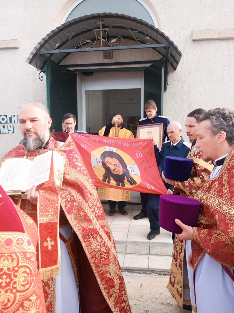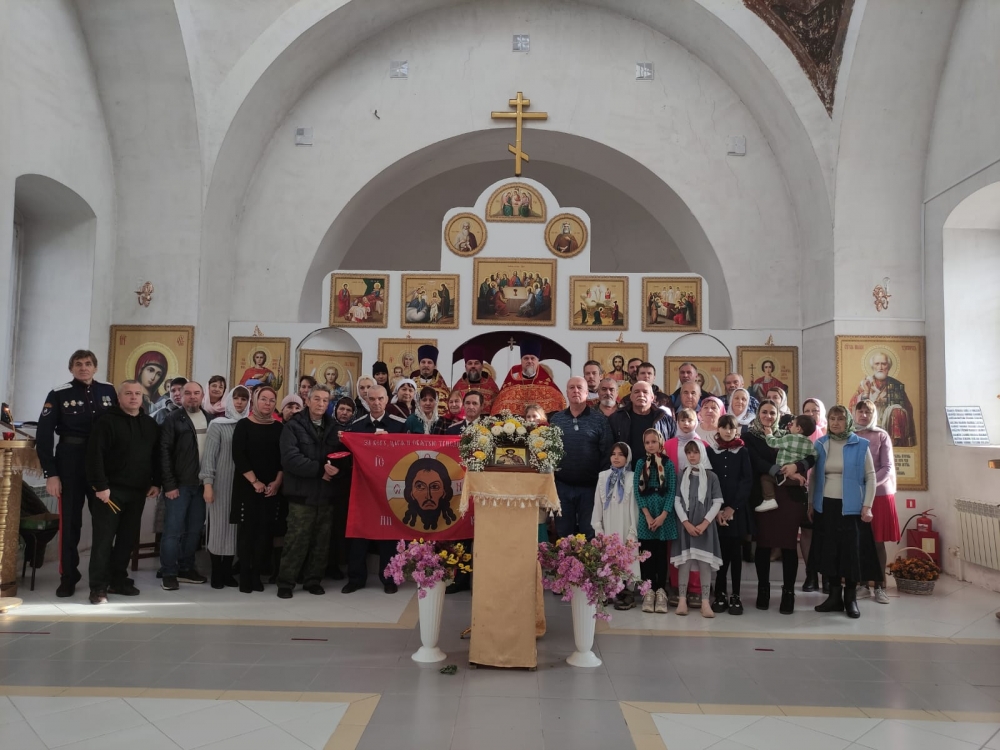 Ещё хочется сказать о наших братьях казаках, которые прибыли сегодня на службу при полном параде, со знаменем в руках, которое побывало на Донбассе. На нём даже были автографы наших воинов! Спасибо вам, братья!