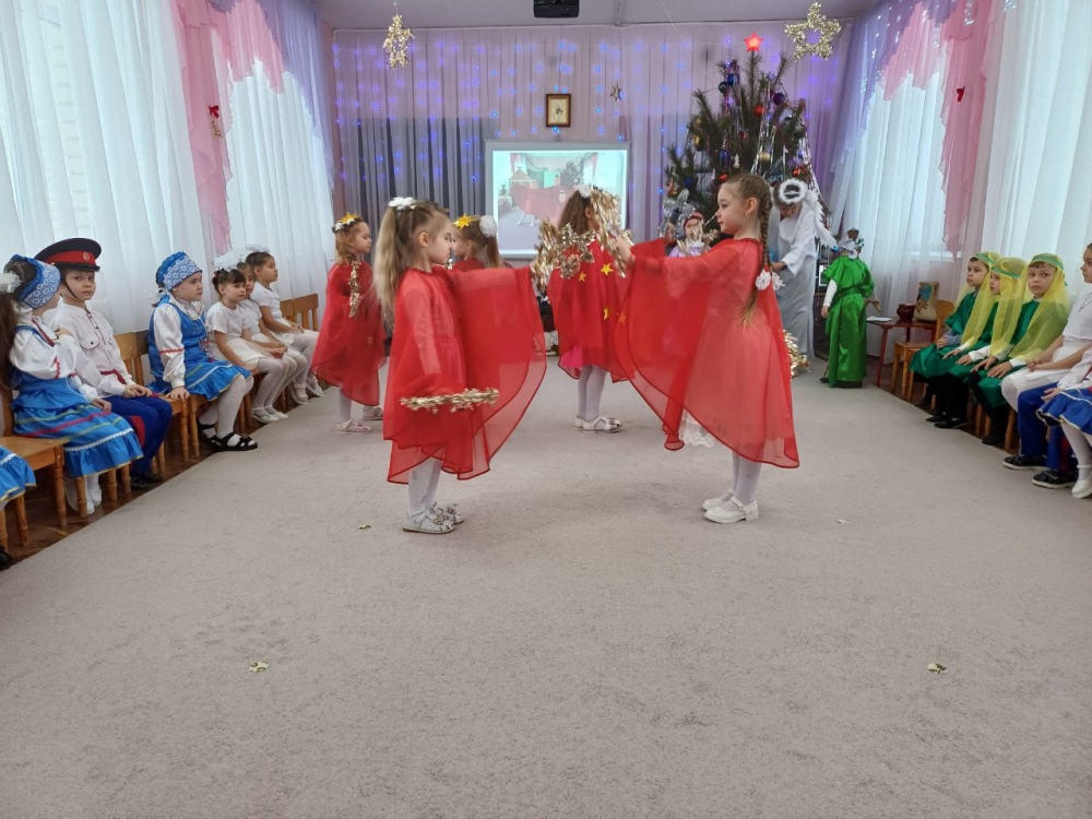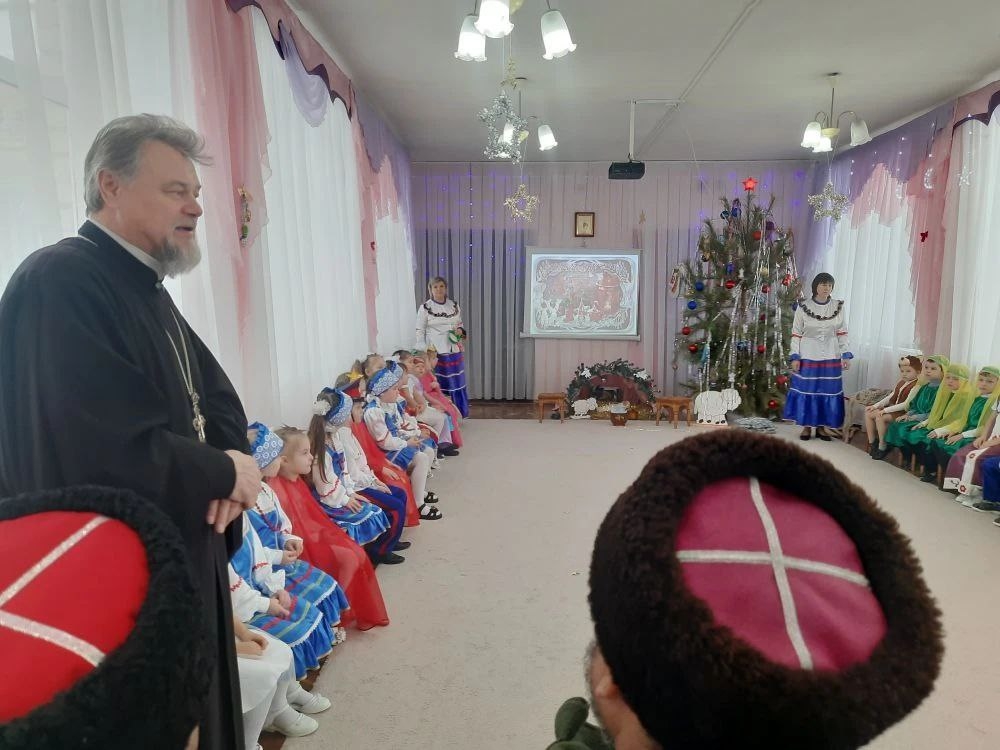 С особым радушием детский сад встретил настоятеля церкви Петра и Павла протоиерея Николая Формазюк, он поздравил детей, пожелав им мира, благополучия и семейного счастья. Он рассказал о значении Рождества, истории рождения Иисуса Христа и объяснил, почему этот праздник важен для верующих. Он объяснил ребятам и присутствующим родителям, что Рождество символизирует воплощение божественного начала, несёт надежду и свет. Это помогло дошкольникам лучше понять духовную суть праздника. Праздник был наполнен сказочной атмосферой. В завершении праздника батюшка Николай поблагодарил детей и педагогов за прекрасно подготовленную праздничную программу и рождественскую атмосферу, вручив каждому ребёнку сладкий гостинец. Также с поздравлениями к детям и сотрудникам обратились казаки - наставники, и руководитель организации «Боевое братство» Локонов А.Е и вручили сладкие подарки. Такие события способствуют духовно-нравственному развитию детей. Праздник, несомненно, привнёс в жизнь детей атмосферу радости и счастья!