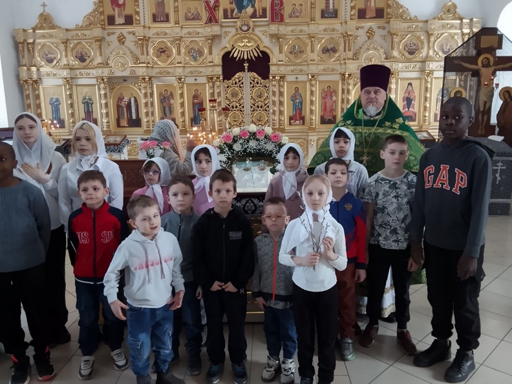 Ученики воскресной школы Петропавловского храма посетили Божественную Литургию в день празднивания Входа Господня во Иерусалим, а также приложились к ковчегу с мощами святителя Спиридона, епископа Тримифунтского, чудотворца, который пребывает в Петропавловском благочинии по благословению епископа Балашовского и Ртищевского Тарасия.