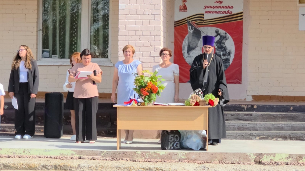 1 сентября в средней школе #10 п. Каменский прошла торжественная линейка посвященная Дню Знаний. В празднике принял участие настоятель храма святых апостолов Петра и Павла п. Каменский иерей Сергий Ефремов. Священник поздравил всех детей с началом нового учебного года пожелав учится на отлично, а первоклассникам вручил памятные подарки от храма