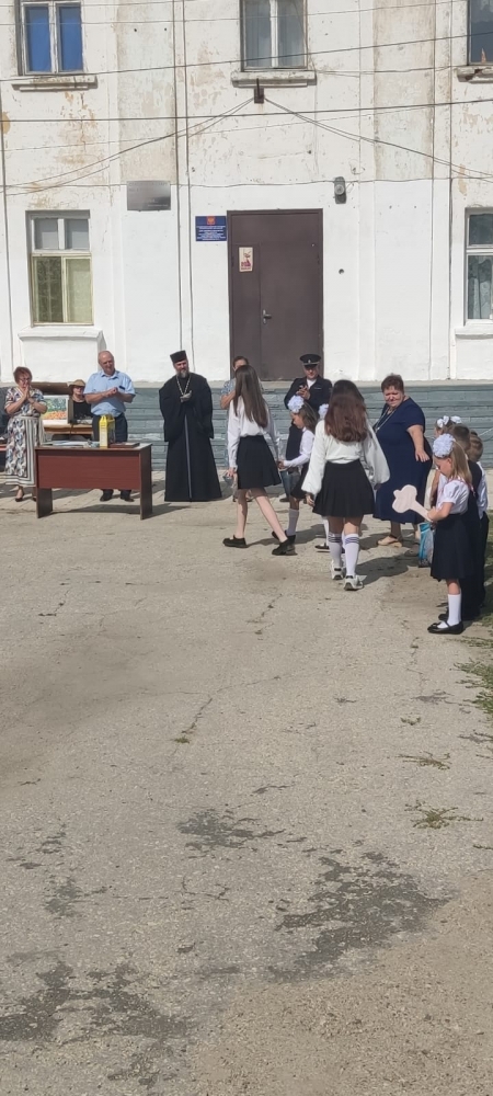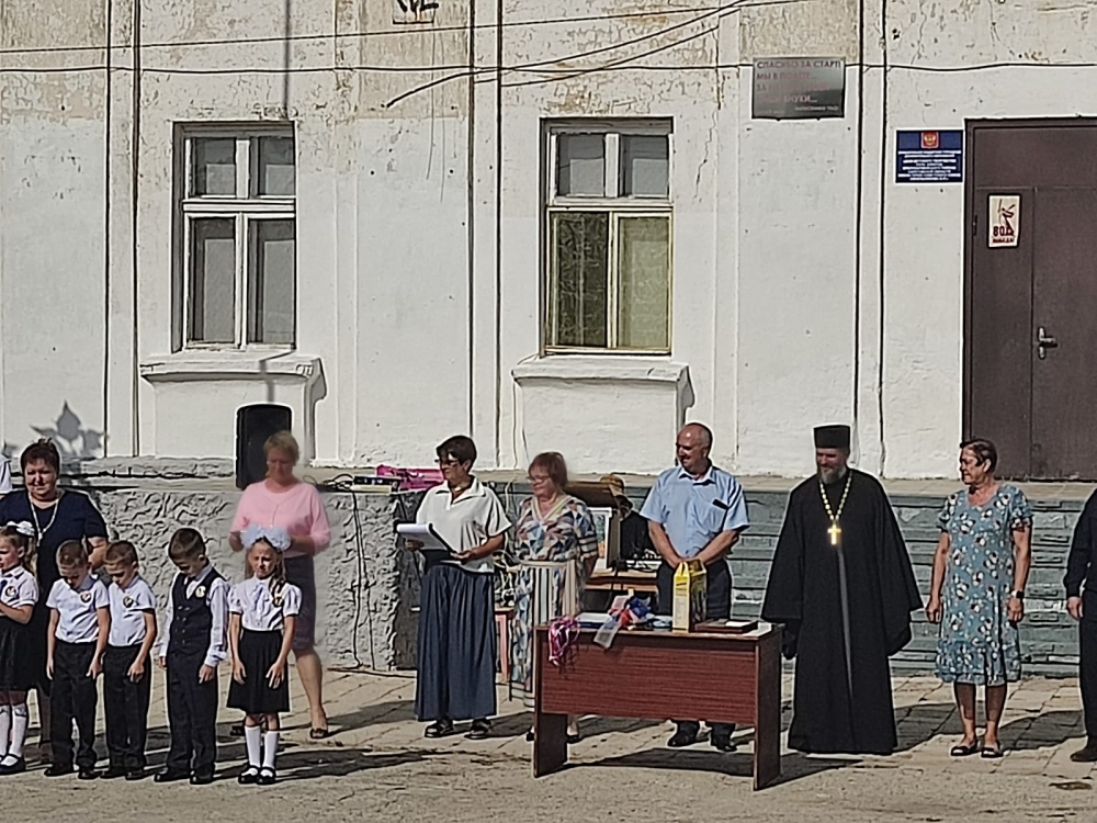 В с. Золотое в День Знаний в СОШ №11 священник ( протоиерей Борис Ищенко) принял участие в школьной линейке.