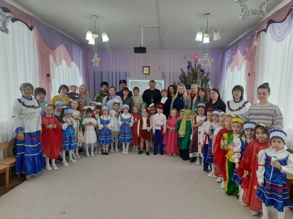 С особым радушием детский сад встретил настоятеля церкви Петра и Павла протоиерея Николая Формазюк, он поздравил детей, пожелав им мира, благополучия и семейного счастья. Он рассказал о значении Рождества, истории рождения Иисуса Христа и объяснил, почему этот праздник важен для верующих. Он объяснил ребятам и присутствующим родителям, что Рождество символизирует воплощение божественного начала, несёт надежду и свет. Это помогло дошкольникам лучше понять духовную суть праздника. Праздник был наполнен сказочной атмосферой. В завершении праздника батюшка Николай поблагодарил детей и педагогов за прекрасно подготовленную праздничную программу и рождественскую атмосферу, вручив каждому ребёнку сладкий гостинец. Также с поздравлениями к детям и сотрудникам обратились казаки - наставники, и руководитель организации «Боевое братство» Локонов А.Е и вручили сладкие подарки. Такие события способствуют духовно-нравственному развитию детей. Праздник, несомненно, привнёс в жизнь детей атмосферу радости и счастья!